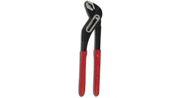 Waterpomptang 7-voudig verstelbaar met doorgestoken scharnier. Gemaakt van gehard en getemperd chroom vanadium staal met gedompelde kunststof greep.
