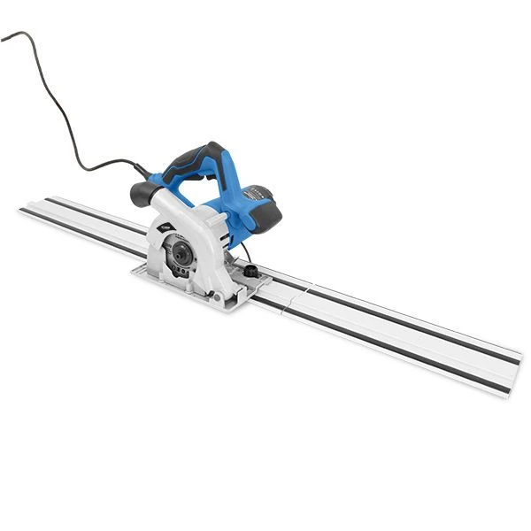 De zaag wordt geleverd inclusief 3 x 330 mm geleiderail (lineaal) met geëxtrudeerde sporen en antislipbasis. Bereik afschuinhoek: 0-45°.