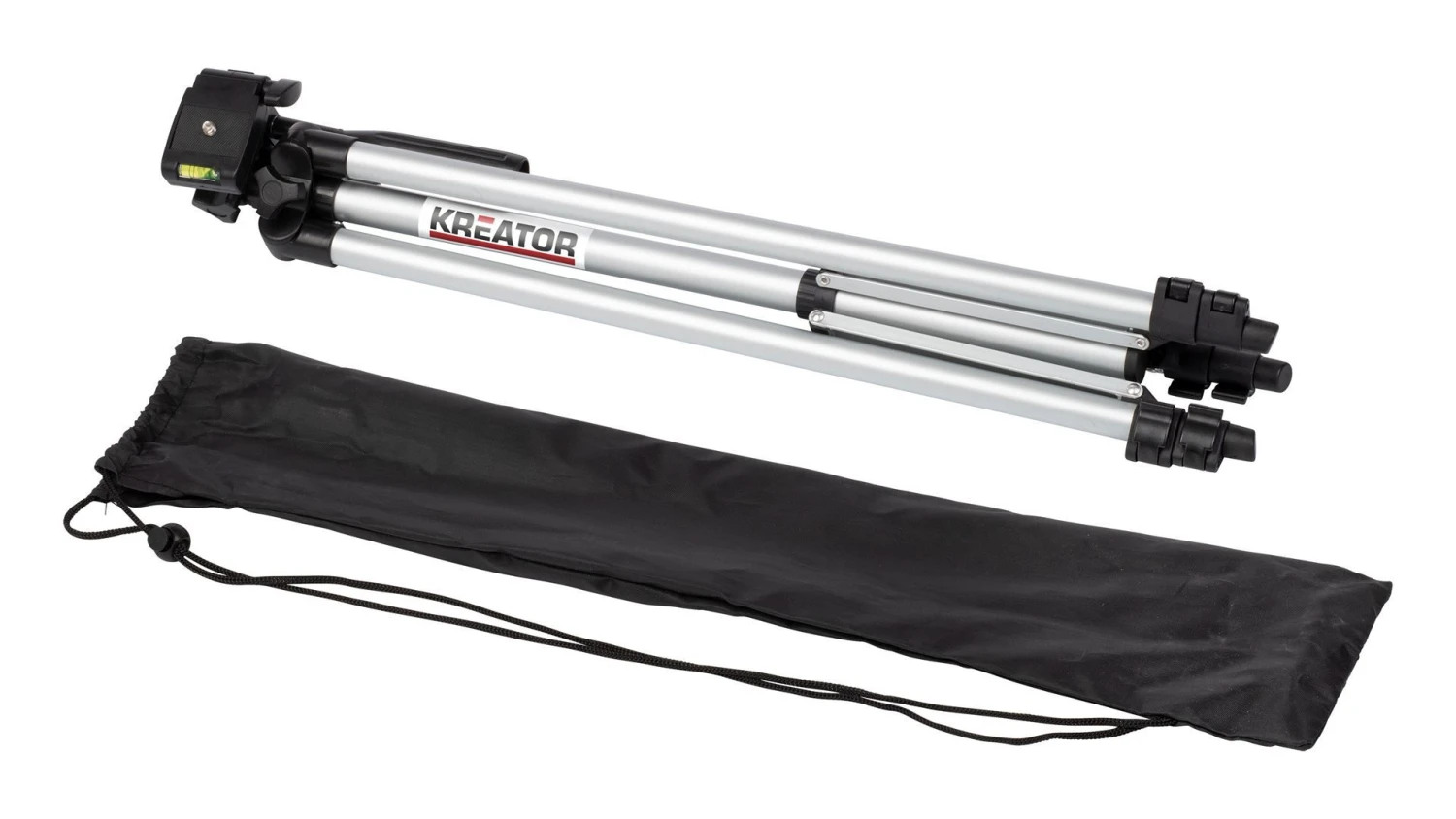 Op dit aluminium statief van Kreator klik je je laser vast, zodat hij stabiel op een hoogte tot max. 152 cm staat. Je kan ook kiezen voor een hoogte van 50 cm of 83 cm, wat jou het beste uitkomt. Dit telescopische statief heeft een standaardschroef en is dus compatibel met vele andere tools. Zo kan je er bv. ook een fototoestel op bevestigen. Je neemt het makkelijk mee in de bijgeleverde opbergzak.