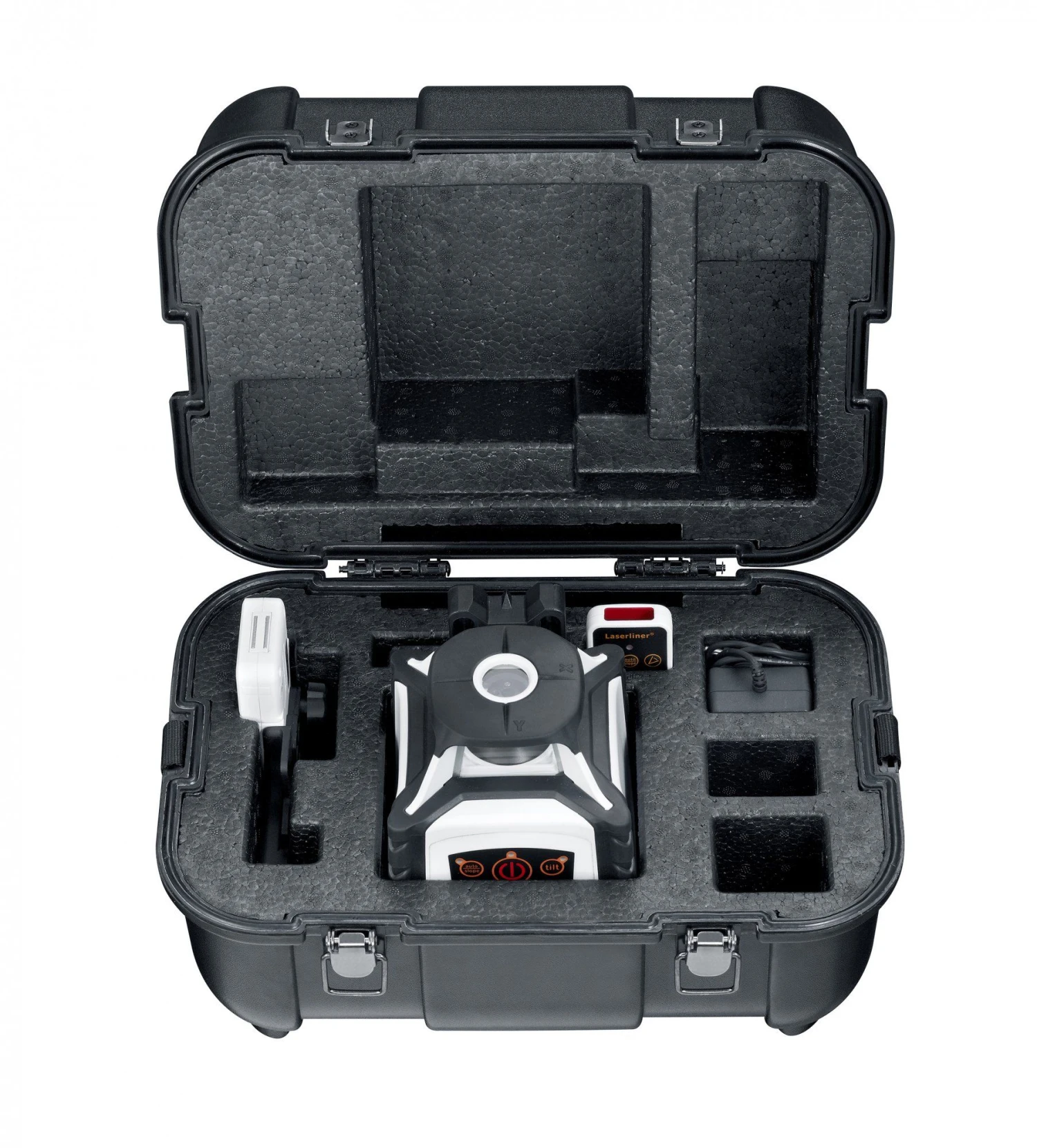 De SensoLite 110 G laserontvanger beschikt over LC-Displays aan voorkant. Krachtige hechtmagneten maken het bevestigen aan magnetische voorwerpen mogelijk.